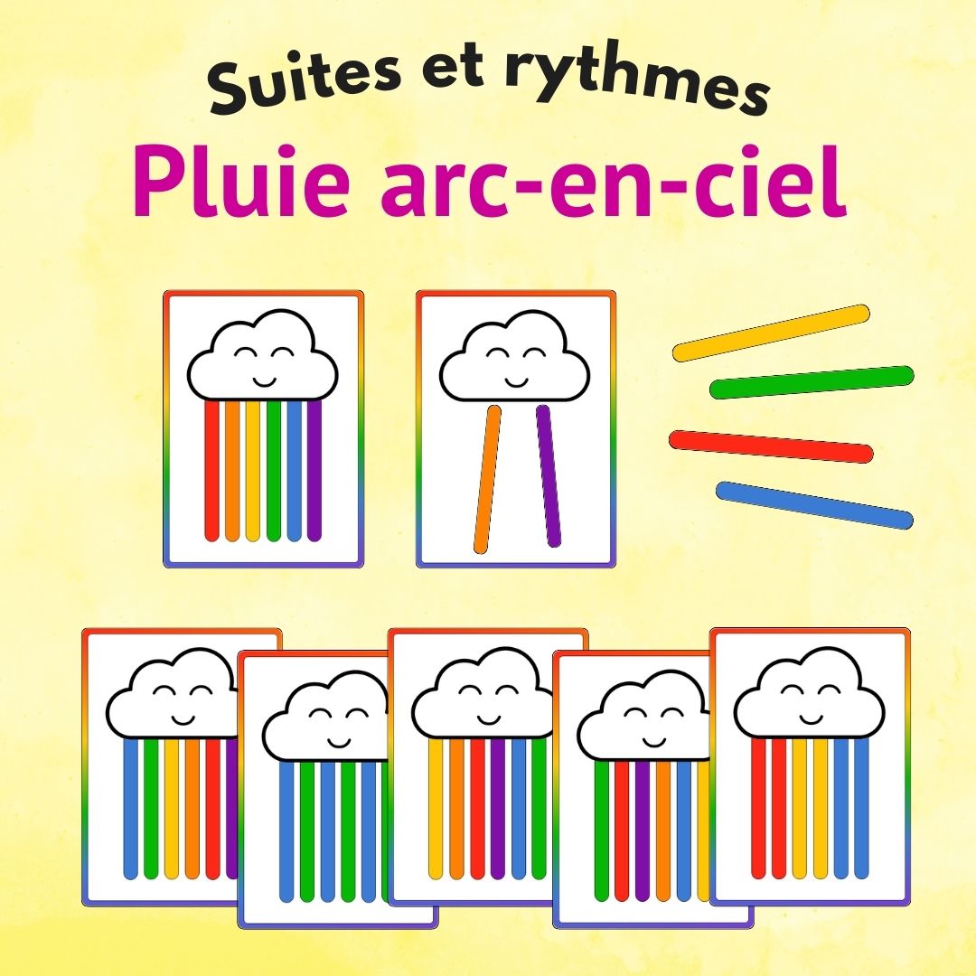 - La pluie libre : Proposer des créations libres pour que l’enfant invente ses propres suites de couleurs et exprime sa créativité.