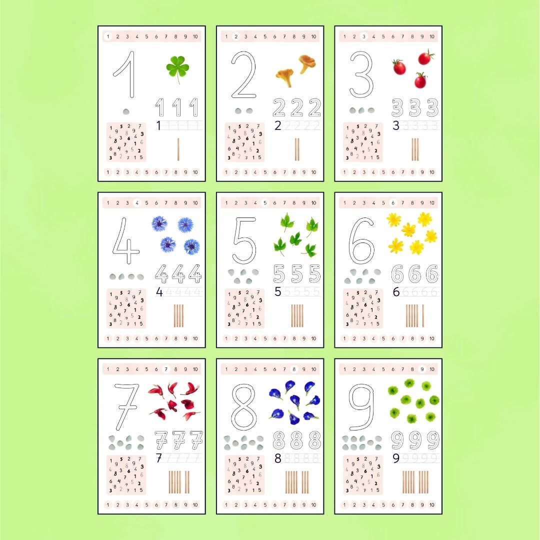 ✓ Associer le symbole à la quantité : chaque chiffre est relié à un nombre concret d’éléments naturels, renforçant la compréhension des nombres.