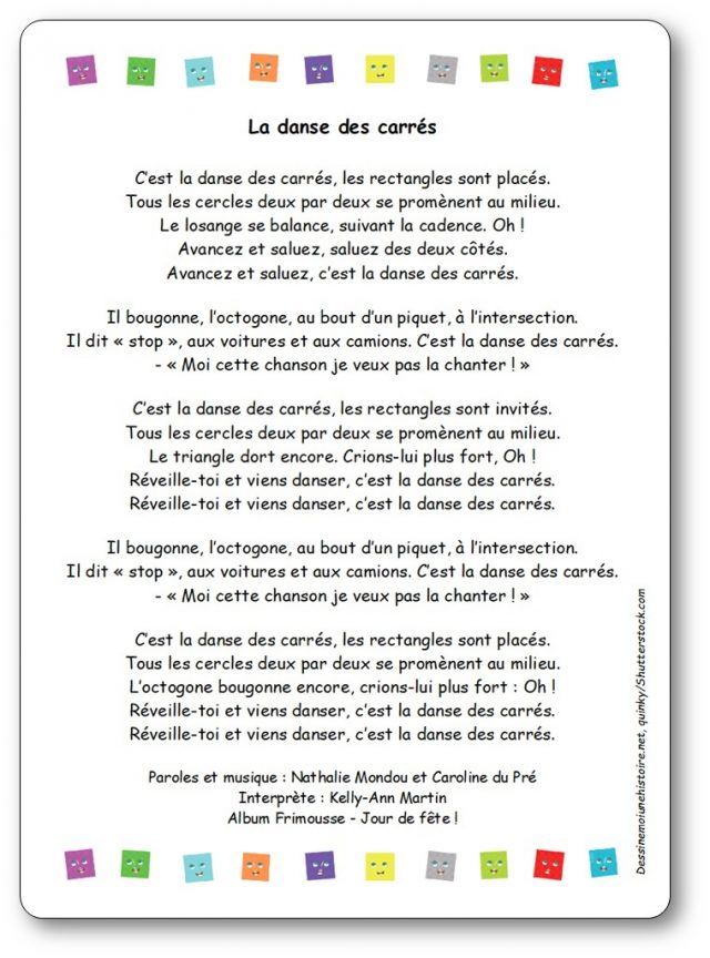 Vous trouverez ici l’ensemble des comptines, chansons et poésies pour apprendre le nom des formes géométriques.