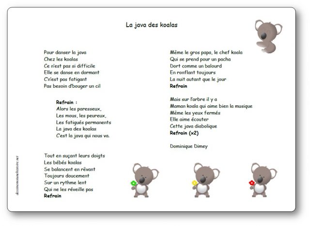 « La java des koalas » est une magnifique chanson de Dominique Dimey qui vous fera danser sur un rythme lent !