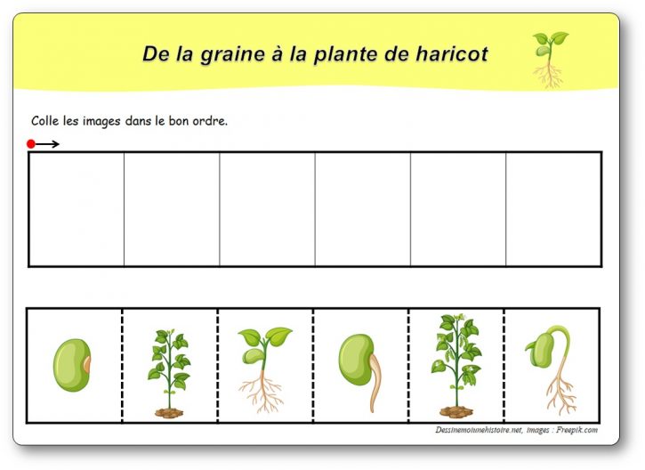 Voici une série d’images séquentielles présentant les différentes étapes du développement du haricot (de la graine à la plante) qu’il faudra replacer dans l’ordre chronologique.